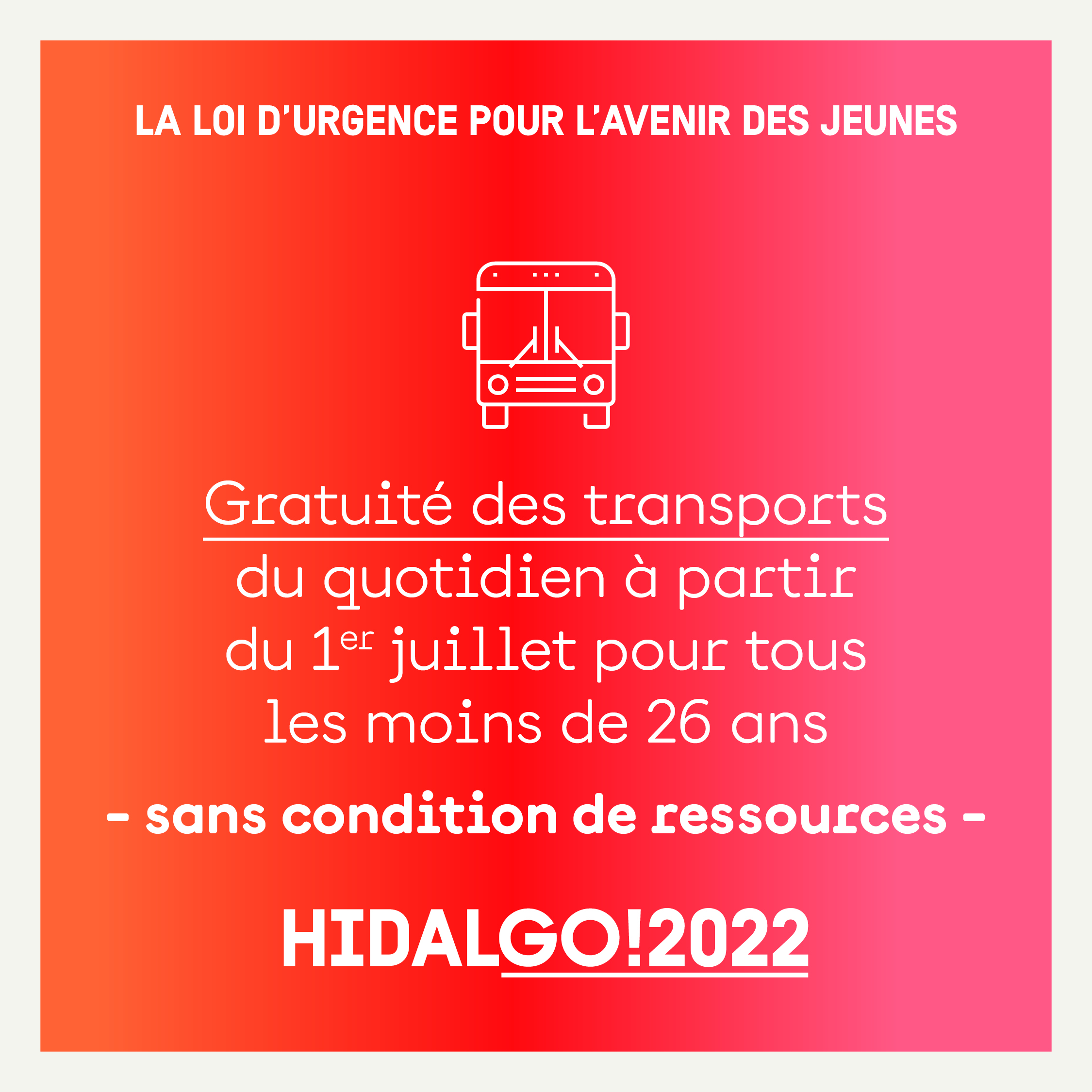 - La gratuité des transports du quotidien pour les moins de 26 ans.