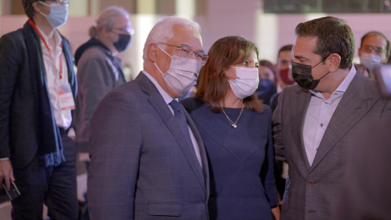 Anne Hidalgo aux côtés du premier ministre portugais Antonio Costa et de l'ancien premier ministre grec Alexis Tsipras