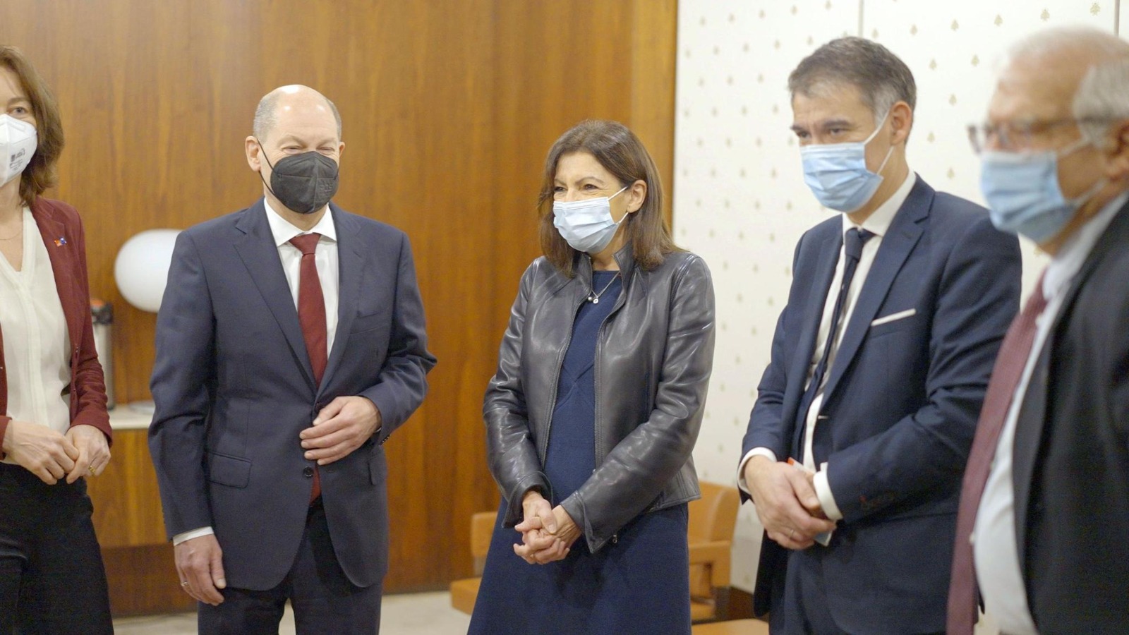 Anne Hidalgo aux côtés du chancelier allemand Olaf Scholz et d'Olivier Faure, Premier secrétaire du PS